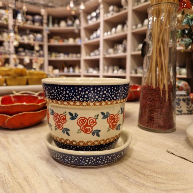 Für drinnen und draußen geeignet. Blumentopf mit Bodenloch und passendem Untersetzer. Ein klassischer, runder Pflanzkübel aus Bunzlauer Keramik ? zeitlos und praktisch.