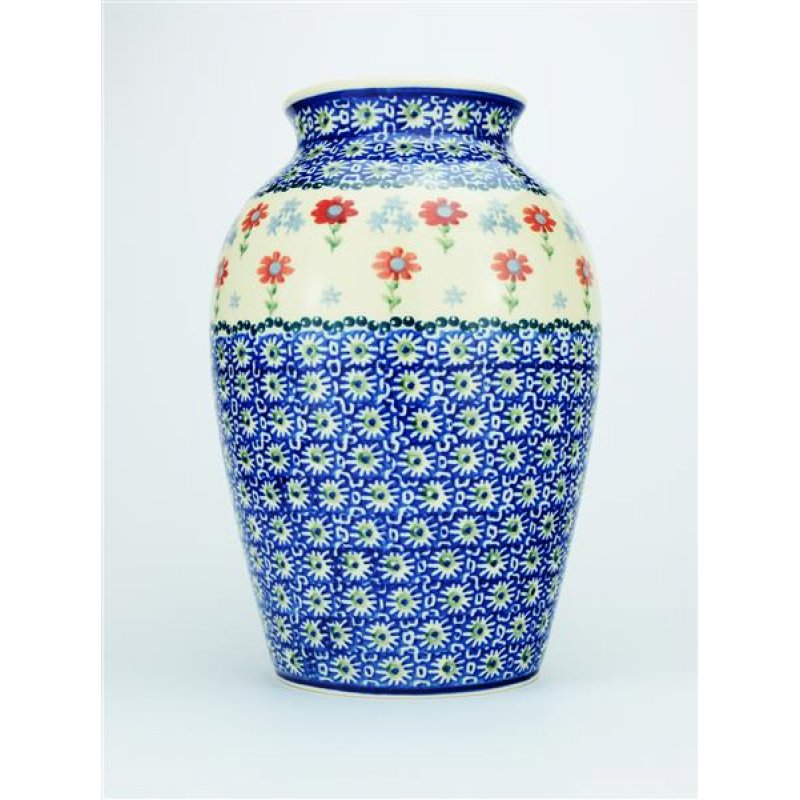 Mittlere Bodenvase in elegantem Design mit dezenter Ausformung am oberen Rand. Eine schöne Vase, die mit ihrer Form an die alten Bunzlauer Vasen des 19. Jahrhunderts erinnert. Die klassische Form bildet eine Basis für glamouröse, spannungsreiche und zugleich harmonische Blumenkompositionen. Der Durchmesser am oberen Rand beträgt 10 cm.