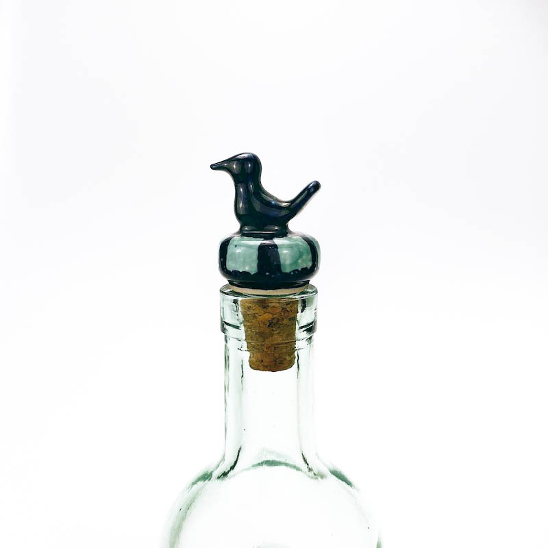 Ein schöner Bunzlauer Weinkorken vollendet mit einer Vogelfigur