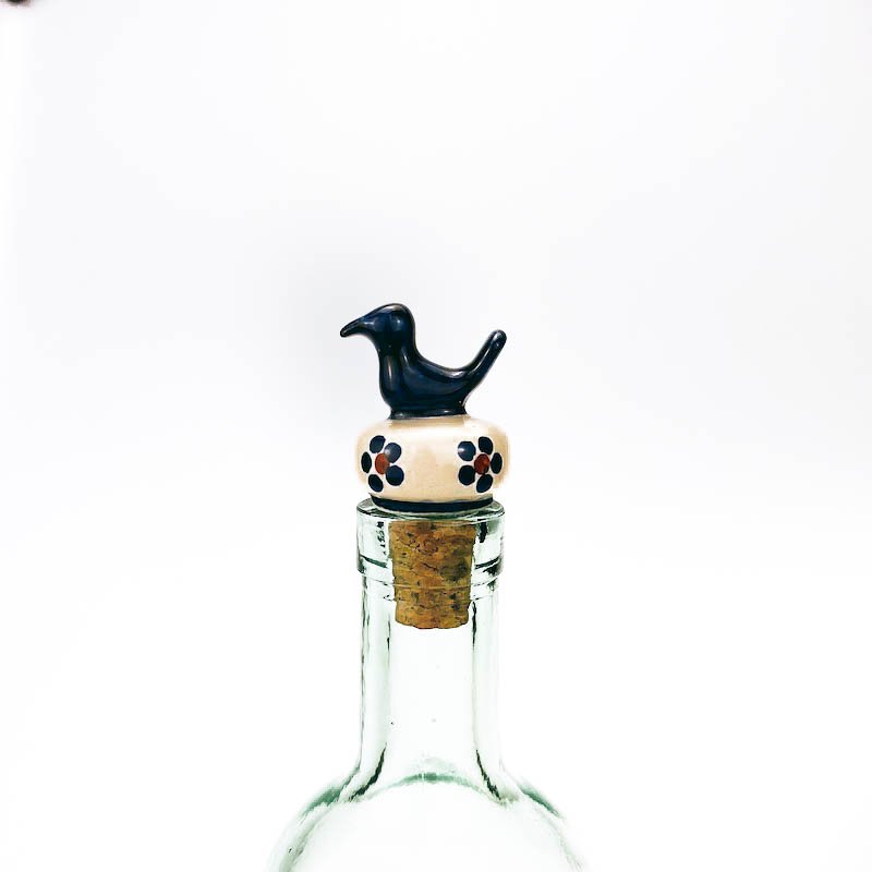 Ein schöner Bunzlauer Weinkorken vollendet mit einer Vogelfigur