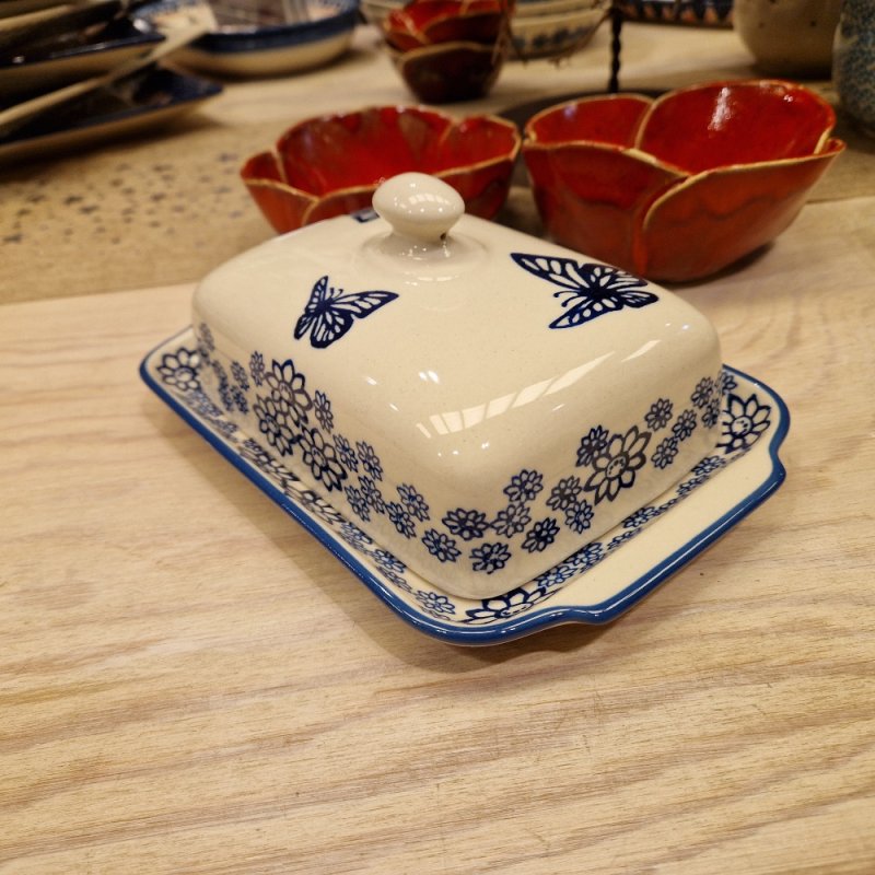 Die Butterdose ist ein Herzstück auf fast jedem Frühstücks- und Abendbrottisch. Es dürfen andere Keramiken fehlen aber nicht diese? Wir haben sie in vielen kombinierbaren Dekoren. Einfach die für Sie schönste aussuchen. Hier eine schöne Form mit kleinem Knopf als festen Handgriff.