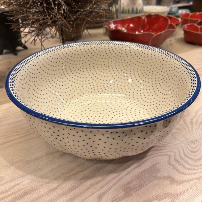 Mindestens eine große Schüssel sollte im Haushalt nicht fehlen. Das sagen wir nicht als Verkäufer, das meinen wir als stolze Besitzer von gleich zwei solch großen Schüsseln. Diese hier hat außer ihrer beachtlichen Größe auch noch eine außergewöhnliche Form, sie ist aussen dezent mit Wellen verziert. Haltbare und vielseitig einsetzbare, hochwertige Schüssel, die auch auf dem Tisch ein Hingucker ist.