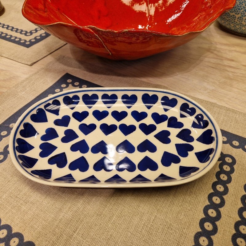 Kleine elegante Bunzlauer Platte. Bestens geeignet für den täglichen Gebrauch. Haltbare, bruchsichere und vielseitig einsetzbare, hochwertige Bunzlauer Servierplatte!