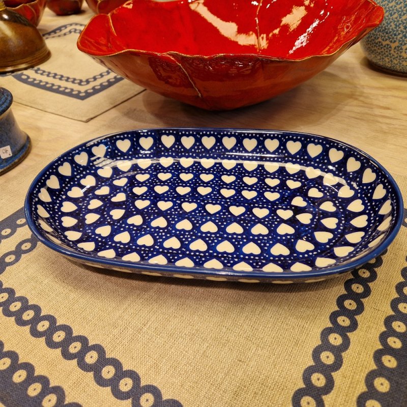 Kleine elegante Bunzlauer Platte. Bestens geeignet für den täglichen Gebrauch. Haltbare, bruchsichere und vielseitig einsetzbare, hochwertige Bunzlauer Servierplatte!