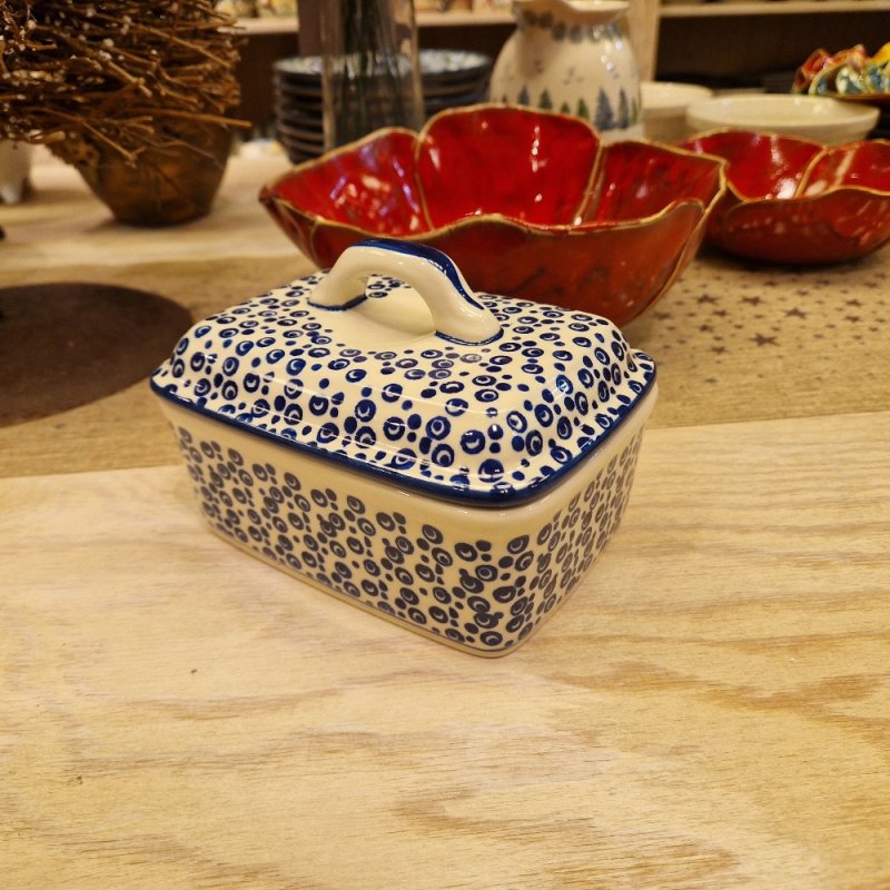 Margarinedose oder auch Butterdose für 250 g Butter, mit einem flachen Deckel. Übrigens, wir haben von einer Stammkundin erfahren, dass sie diese Margarinedose als Pasteten-Auflaufform nutzt? Ja, wir staunen auch immer wieder?