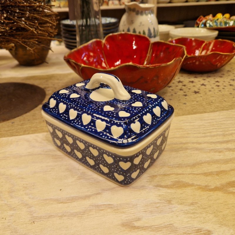 Margarinedose oder auch Butterdose für 250 g Butter, mit einem flachen Deckel. Übrigens, wir haben von einer Stammkundin erfahren, dass sie diese Margarinedose als Pasteten-Auflaufform nutzt? Ja, wir staunen auch immer wieder?