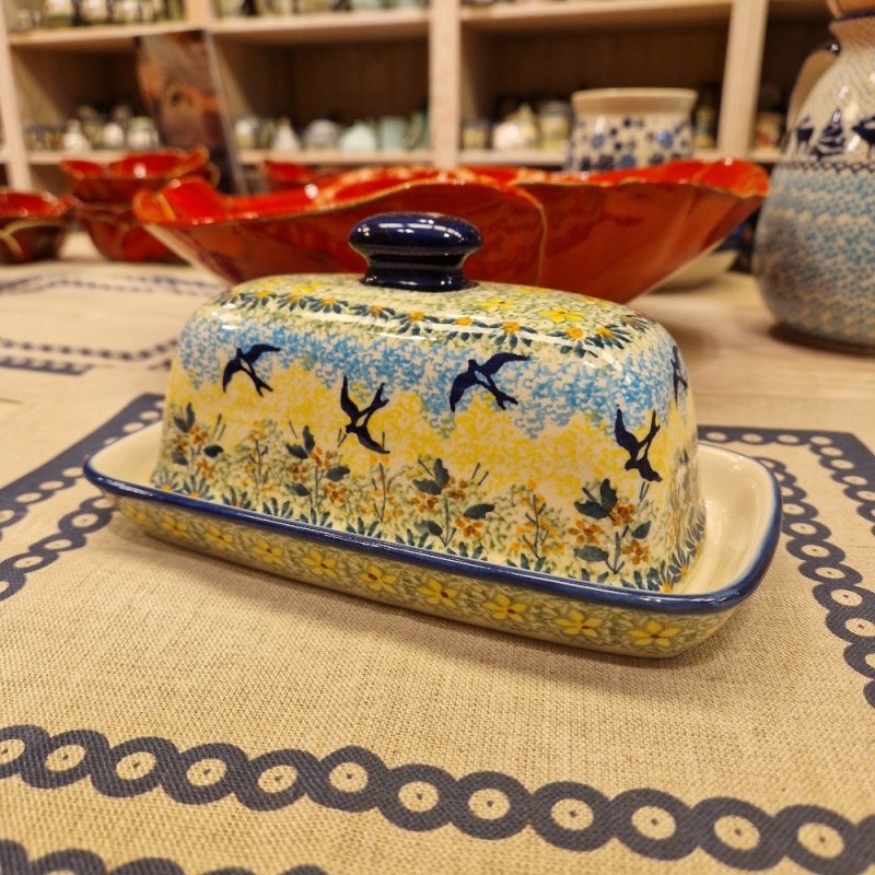 Schmale und dennoch - durch den hohen Deckel - größere Rollenbutter- oder Käsedose. Ursprünglich wurde diese Form von unserem Bunzlauer Töpfermeister für den amerikanischen Markt entwickelt. Zunehmend gewinnt sie auch in Deutschland an Beliebtheit.