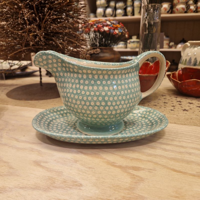 Was wäre ein guter Braten ohne eine gute Sauce? Servieren Sie Ihre selbstgekochte Sauce in dieser schlichten Bunzlauer Sauciere.