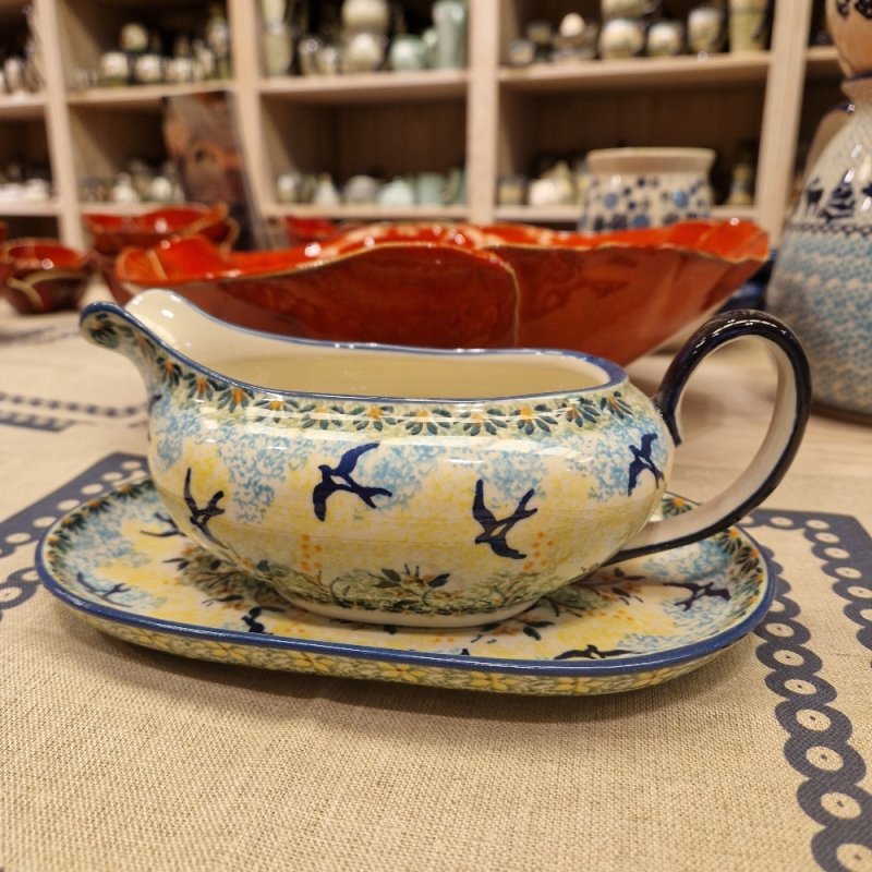 Was wäre ein guter Braten ohne eine gute Sauce? Servieren Sie Ihre selbstgekochte Sauce in dieser schlichten Bunzlauer Sauciere.