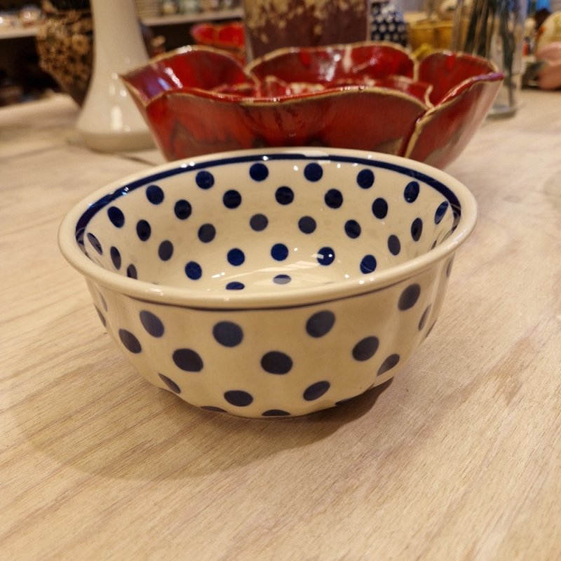 Aus der Reihe der mittleren Schüsseln ist diese vielseitig einsetzbare Schüssel. Diese mittlere Schüssel (O15 cm) ist außen in ihrer Form dezent mit Wellen verziert. Ihre schöne Innenbemalung macht sie noch interessanter. Resümee: eine haltbare und vielseitig einsetzbare, hochwertige Schüssel, die auch auf dem Tisch ein Hingucker ist.