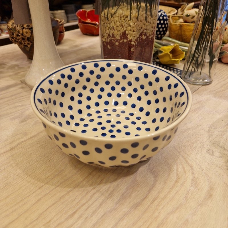 Aus der Reihe der großen Schüsseln, ist diese vielseitig einsetzbare Schüssel. Diese große Schüssel (O24 cm) ist außen in ihrer Form dezent mit Wellen verziert. Ihre schöne Innenbemalung macht sie noch interessanter. Resümee: eine haltbare und vielseitig einsetzbare, hochwertige Schüssel, die auch auf dem Tisch ein Hingucker ist.