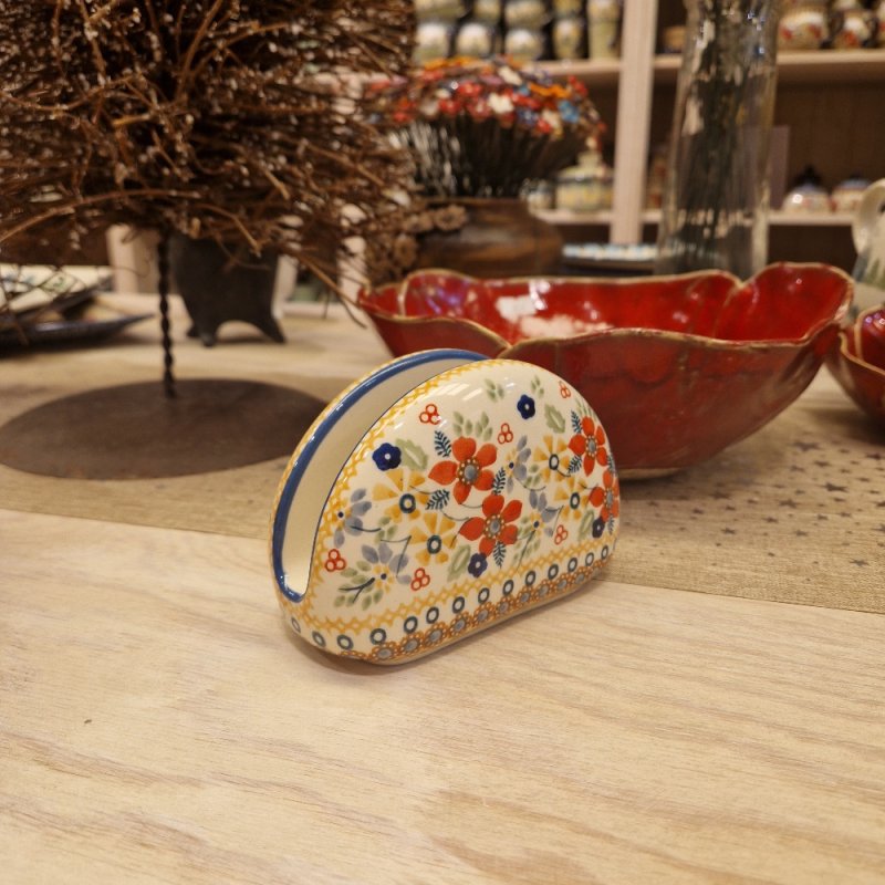 Ein schöner halbrunder Serviettenhalter. Auf Grund seiner durchdachten Form ein dezenter Begleiter bei jeder Mahlzeit.