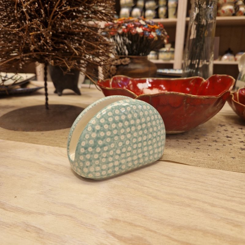 Ein schöner halbrunder Serviettenhalter. Auf Grund seiner durchdachten Form ein dezenter Begleiter bei jeder Mahlzeit.