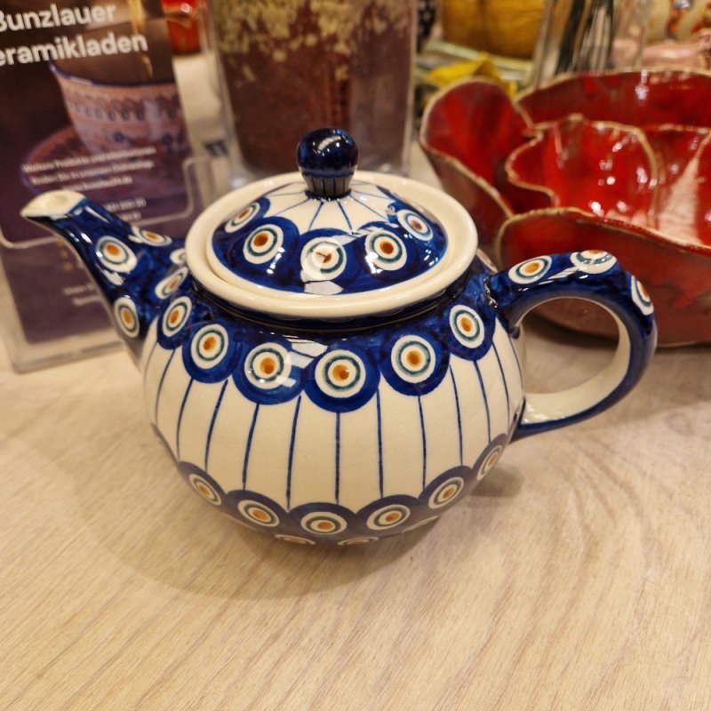 Eine mittlere Teekanne ca 1000 ml. Zu wenig für zwei Teetrinker, aber für den "Otto-Normal-Tee-Verbraucher" eine optimale Größe. Eine schöne bauchige Form, die an alte Bunzlauer Keramikzeiten aus den 1930er Jahren erinnert. Übrigens, ob man diese spülen sollte oder nicht, es streiten sich die Experten in dem Beitrag auf: http://www.tee-tagebuch.de/2012/11/tee-mythos-patina-teekanne-spuelen-oder-nicht.htmlWir empfehlen Ihnen, unsere Teekannen per Hand zu spülen. Übrigens, ein passendes Stövchen finden Sie unter Artikel Nummer M809.